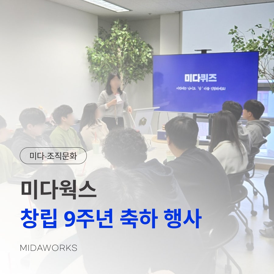 9주년을 맞이하는 미다웍스, 미다행사로 소중한 순간 함께하기 미다웍스가 창립 9주년을 맞이하여 특별한 행사를 준비했습니다. 지난 9년 동안 함께 성장해온 모든